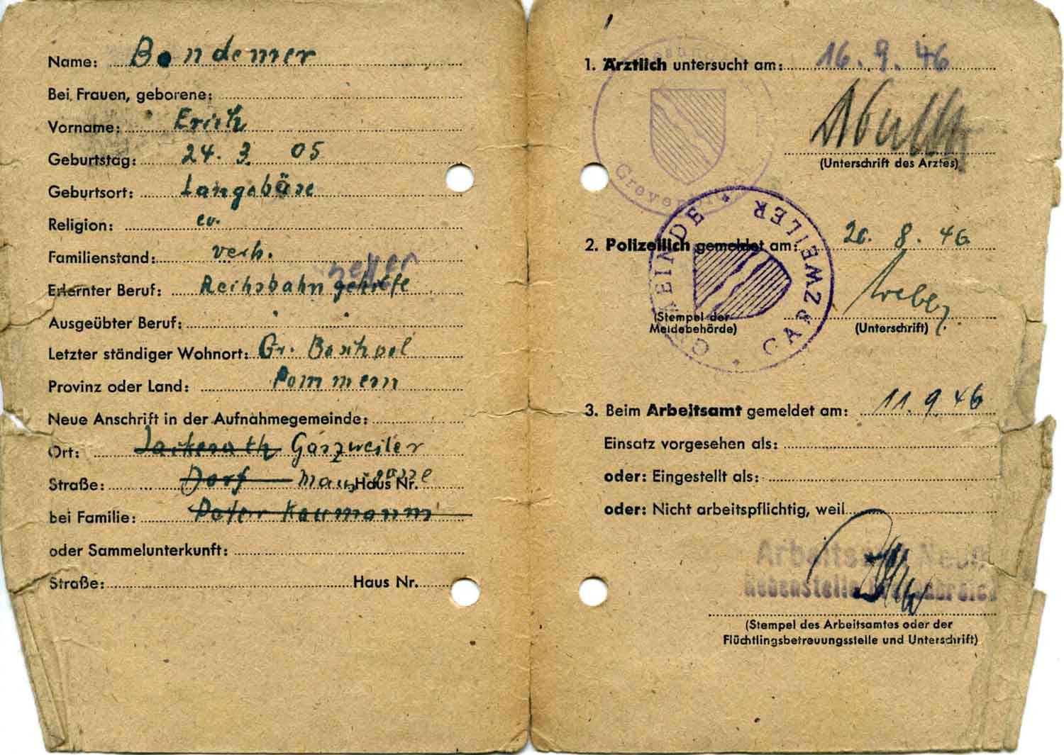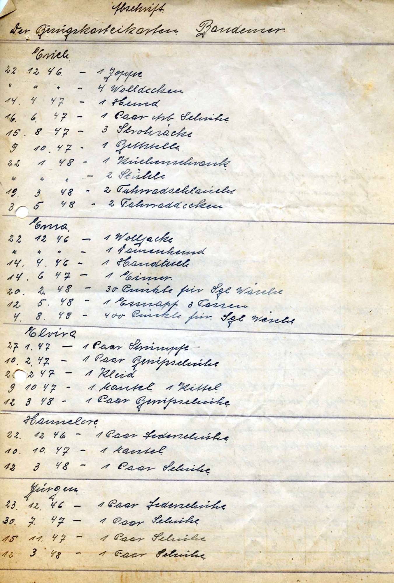 Natürlich ist jeder darauf bedacht, „irgendwo unterzukommen“, weshalb sowohl seitens der Gemeindeverwaltung als auch in Privatinitiative nach einer freien Unterkunft gesucht wird. So wird Familie Bandemer vom Jackerather Ortsvorsteher zur Wohnungsbesichtigung bei einem großen Bauern abgeholt. Die Besichtigung hat für Erich Bandemer eher abenteuerlichen Charakter: „Da wurde er geführt über eine Hühnerleiter nach oben, über Ställe, wo Knechte und Mägde mal gelebt haben. Da sollte er mit uns einziehen.“ Das lehnt er mit klaren Worten ab. „Das könnte er seiner Familie nicht zumuten.“ Die heruntergekommenen Räume seien nicht nur eine „furchtbare Zumutung“ gewesen, sondern der Zugang zu ihnen zudem lebensgefährlich.