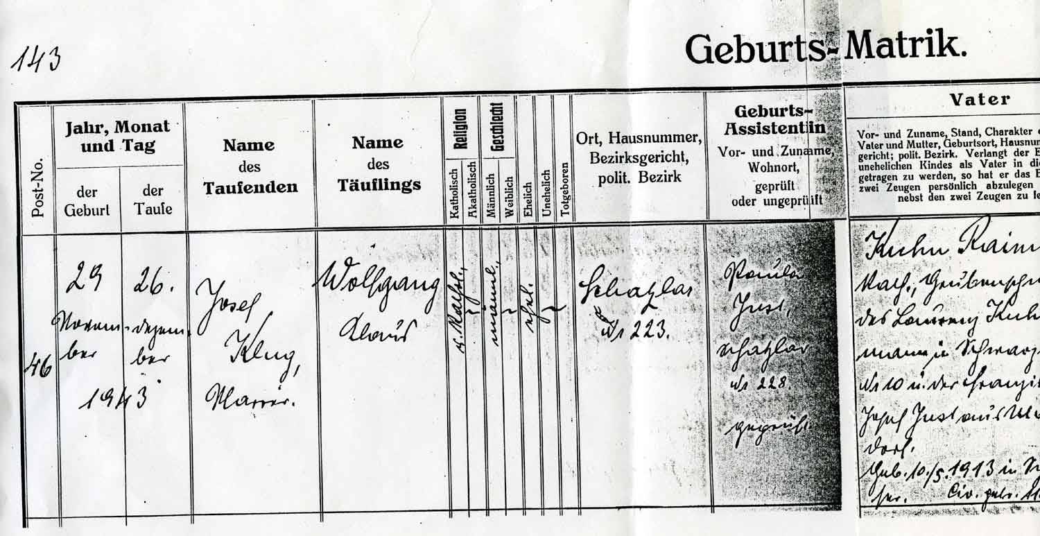 Angeregt durch den Hinweis einer ebenfalls aus dem Sudetenland stammende Jüchenerin – der Schwester des hier ebenfalls porträtierten Werner Schuh – sieht Wolfgang Kuhn Kirchenbücher und Personenstandsunterlagen ein. Im Bürgermeisteramt wird ihm schließlich tatsächlich seine Geburtsurkunde vorgelegt: „Da stand ich da“, stellt er noch heute positiv überrascht fest, „da las ich meinen Namen in Schatzlar!“