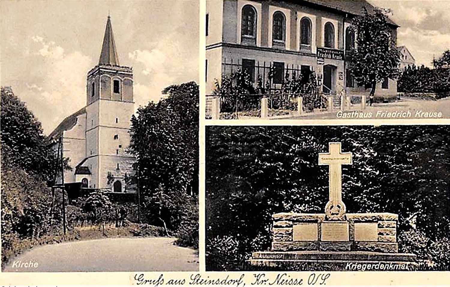 Die Müllers halten als Nutztiere zwei bis drei Pferde, sechs bis sieben Kühe, Schweine, Gänse und Hühner. Hinzu kommen ein großer Garten sowie große, zum Teil gepachtete Felder. Der Hof liegt zentral in Steinsfeld, das wiederum unmittelbar dem größeren Steinau benachbart ist. Getrennt sind beide Orte durch das Flüsschen Steine, dass auch die Grenze zwischen den beiden Kreisen Neiße (Steinsdorf) und Neustadt (Steinau) darstellt. Steinsdorf zählt 1939 lediglich 551 Einwohner, ist zugleich aber Sitz der Amtsvertretung. Das besondere Merkmal des Dorfes ist seine 1586 erbaute Kirche, die auf einer Anhöhe über dem Ort thront und als einer der schönsten Sakralbauten Schlesiens gilt. Elisabeth Schütte betont, dass sie sich in dieser Kirche stets „sehr heimisch und wohl gefühlt“ habe.